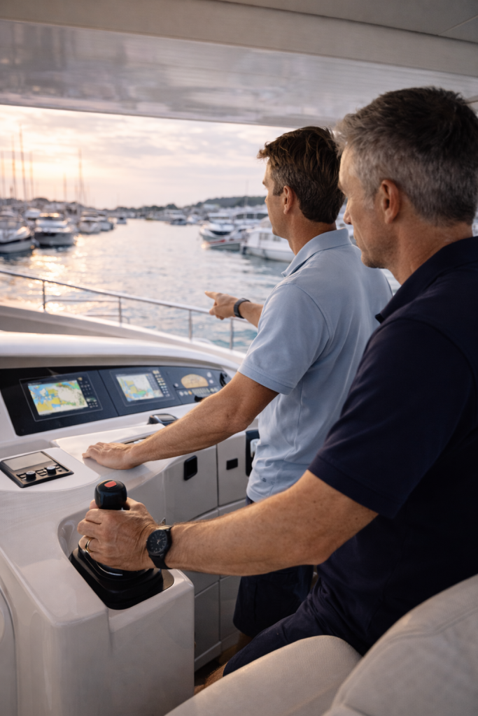 This service is not a formal course. It is practical, onboard support focused on real situations — helping owners and crews feel more confident with maneuvering, advanced sailing, planning, and everyday operation of their yacht